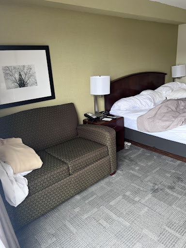 Where to begin? The BEST part of this experience was the pleasantness of the young man at the front desk. |I had booked the jacuzzi king suite for a one night stay then had to move the booking from Friday to Sunday night. No problem I was told. Booked and confrimed. Then called and told the main floor suite was already booked, so no probllem I was booked intot he second floor suite.|The next day I was called and informed there were plumbing issue with that jacuzzi and it was inoperable. No problem- I really would just like a bath the jacuzzi is not critical- a bath and a good bed for a good night sleep. another room with a tub please- toward the back where it is quiet.|The woman proclaimed she had 'lovely queen' near the front. I reiterated my preference for near the rear, but she insisted this was a lovely quite room. So foolishly I thought she must know her rooms!||I arrived checked in and discovered it had only a standing shower. |I went to the desk an reiterated my deep desire for a tub. (I shold have simply checked out and gon to the comfort in across the street- but time was limited and I thought- make do...|The front desk man proceeded to check every single queen beed on the main floor and not one of them had a tub only dorm type stranding showers.|Getting late for my evening commitment- I said ok I will live with this.|Bad decision.|Did I mention this lovely queen was about as far away as you could get from parking. Parking began halfway to the rear of the building so either way I would have to walk 1/2 the length of the building with my luggage- in the rain (yes it was raining).|Did I mention the room STANK of air freshener? oh yes it did.||When I returned from a long difficult evening hoping for a good night sleep before attending the gathering the next day, I pulled down the cover on the bed to discover they had put cheap egg carton foam over a mattress than would have been worn out over 20 years ago! (it was not close to midnight-not time to be packing up and changing digs.)||I found it impossible to sleep on that awful foam, removed it and the mattress was equally unbearable. |To make matters worse, the stench of the their "air freshener" was over powering- no problem I thought, I'll just run the fan for a bit and clear the ir- BIG MISTAKE! the room was instantly filled with the stench of pungent old cigarette smoke and to make matters worse to have any heat in the room at all that unit had to run.|They have been renovating and whoever retrofitted the bathrooms set the toilet roll behind where you are sitting when on the toilet necessitating having to stand to reach the paper.|The workmanship on the bathroom wallpaper was lso hoddy. |Oh and this "quiet room" near the front? was directly opposite a gas station and all night long trucks and dumpster and heavy vehicles rumbled in, dropped their loads, etc. guess it made little difference as I was truly just counting the hours till I could get up and leave.|As I told the front desk on check out- I have stayed in worse romms in my life- once before- only once- and that was in India and a $5/night hotel.|Regarding the issue of a tub, she claimed well they have no tubs in the kings rooms- and apparently none in the quuen either for I was in a queen and the desk cleark checked every other queen onthe floor!|They did refund my money for the room but nothing, frankly, could make up for that appallingly bad experience. |I feel very bad for the staff. On checking in there was woman we cold name "KAREN abusing the desk clerk for not having received a "double discount" on apparently the very same jacuzzi room I had initially booked! When she started yelling at him, I intervened suggesting it was not his fault and he deserved respect. I have a hunch hover the sytaff must face a lot of abuse for I too found my composure pressed after such a totally appalling experience. ||ok there were a couple pkgs of one cup coffee and 2 tea bags and the fridge worked. But rally what you want first and foremost in ahotel//motel is a clean quite room with a good bed and if advertised (and they do) a tub when you can relax and get clean.|This quality inn: it has some lipstck and rouge, but zero quality...