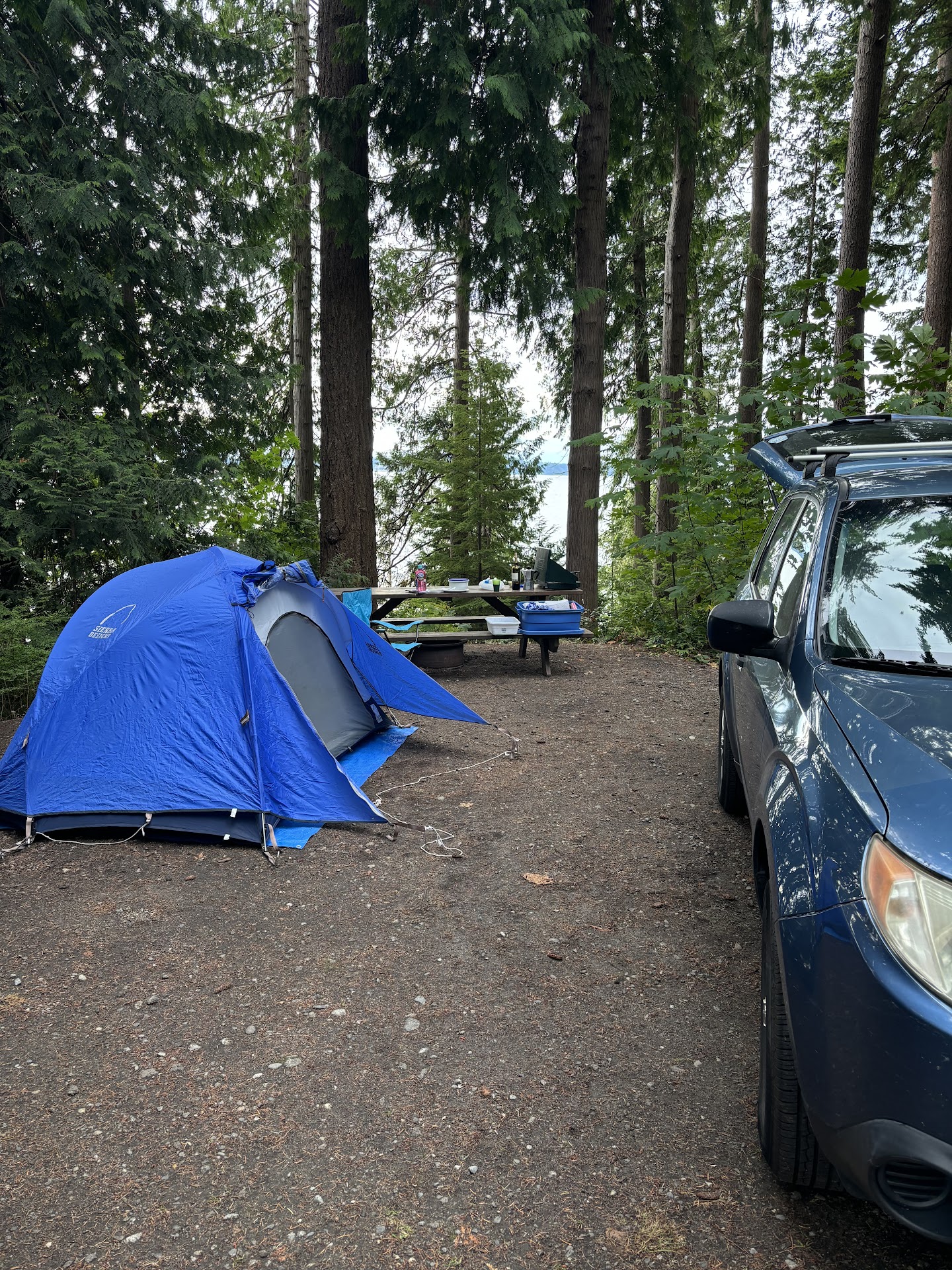 However comes at a cost. The proximity to town should have been a red flag for us. The sites are packed very close together with no privacy. Your neighbors campfire smoke will blow right into your camp even if there's no wind helping it along, the sites are right nect to each other. You can hear not only hear traffic noise from the main highway through town nearby, but also the sirens and various other city noises, all throughout the night and into the morning. Bonus points when the city staff start landscaping the next door park at 8am on the dot, less than 15m from the beach front campsites. Coffee with a side of weed wacking.