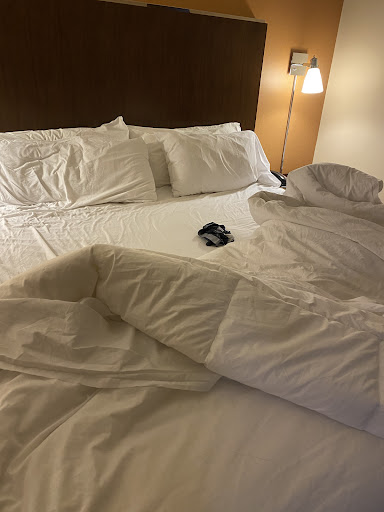 The next day is when the room presented itself to be the next big issue. As the hotel room was dark the night before, and the dim hotel light was all that was to my avail, I could not see the mess of the room I was in. I looked around to my disgust in the morning to find that the curtains were stained with odd oil like blotches, and there were bugs scattered over the windowsill and floor. I expected that, especially during covid, the hotel would have more thorough and enhanced cleaning protocols implemented. This was not shown and I was extremely unsatisfied with how poorly the cleaning job was done.