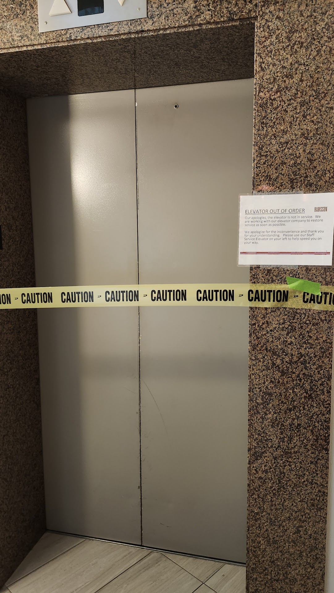 Another issue we came across during our stay is the elevator suddenly went out of order. As we were leaving our hotel room, we tried clicking the elevator button which will usually light up when it's properly selected, but it kept going off every time we clicked it. After a few minutes waiting, our Uber had already arrived and we were late, so we had to use the stairs to go down. But the stairwell cannot be taken all the way to the lobby, because the door on the 1st floor is labeled as an emergency exit that will sound if opened. So we had to go back upstairs to the 2nd floor and transfer to their other staircase to get to the lobby. Our family has someone who has a hard time with stairs, so this was a major inconvenience, especially because it made us late. Even on the first night of our stay, there was already one elevator that was out of order.