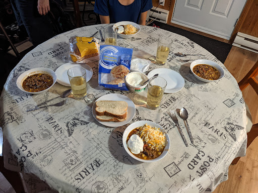 Nos deux dernières nuitées se sont déroulés au Tournesol, le chalet le plus grand du camping. Il peut accueillir jusqu'à 4 couples (4 chambres avec lit double) et avec les trois types de divans où l'on peut s'étendre, j'imagine qu'à 11 c'est faisable. Il y a de la place pour mettre des lits gonflables au sol en plus. Mais il y a juste une seule salle de bain, donc à plusieurs il faudra patienter pour utiliser le petit coin. Les lits sont aussi fermes. Il y a en masse de rangement pour les vêtements dans chaque chambre. Ils sont sur 3 étages et celle au 3e est à aire ouverte. Gare à ceux qui ont peur des hauteurs. Les marchés sont un peu vertigineuses et peu profondes. Il y a une grande table pouvant accueillir au-moins 8 personnes. Dans la salle de bain il y a une laveuse et sécheuse avec le nécessaire pour faire plusieurs brassés. Le spa peut accueillir 7 personnes et un feu de camp est placé non loin avec des tables de pic nic.