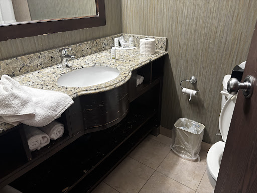 Absolutely awful treatment when here, was told it was service dog friendly and nihb booked us here cause we had an important appointment in the morning. Myself, along with my child and his service dog had to sleep out in our vehicle (rest of the family was up in the room), because they repeatedly told us it was not pet friendly at all, including service animals, upon telling them nihb booked this room for us because it was service dog friendly (and one of the only places they can book for us being status), they proceeded to keep telling us no. I sat in my vehicle and watched as other dogs entered the hotel and when I went back in I asked to speak to a manager about it I was told no, that the manager is busy, and that there's nothing they could do, and that it was "my problem". I was on the verge of tears at 6am, tired and freezing, we tried to come up to the room to warm up for a while and maybe lay down on a bed for a moment and again told to leave without again being able to talk to a manager. My child was forced to sleep out in a vehicle with his service dog. They kept insisting there were no other dogs in the hotel when I physically watched other dogs enter. Being gaslit by the staff was a whole other level. And then having the story switched that the dog I saw was a special kind of service dog. A SERVICE DOG IS A SERVICE DOG!