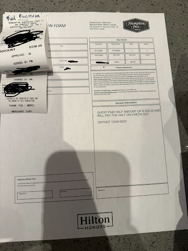 We were in Edmonton for my cousins wedding. We arrived at the hotel to check in at around 4:40pm on a Friday.
