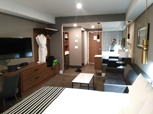 Read moreFirst, great upfront. The actual room itself is nice. The King Suite has a separate air conditioner in both the bedroom and living room. The kitchen and table is nicely laid out. It feels modern and our room was clean. The hotel lobby was nicely laid out, easy access to food as it’s attached to the Chop Grill. Parking was plentiful. It’s very easy to access off the Henday, has a nice shopping area to the east if you need it. The bed has a decent selection of pillows, and the sheets are good. There are also nice big windows in the room that looks out onto a parking lot and green belt. Shower has solid pressure.