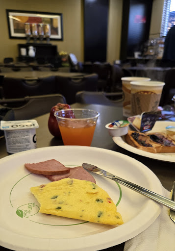 April 2025||I have stayed at this location several times while in the area for sports. It is a good location close to several restaurants and the mall. They have specific pet friendly rooms and a good area on the street behind that you can walk your dog.||I like the entrance of the hotel, it has a nice feel to it with a water fountain. Front desk staff are friendly and were able to accommodate us for an early check in so we could get my daughter ready for her dance competition which was really appreciated.||This stay we had our family of 4 (2 kids) and had a suite with separate bedroom that had two twin beds in it and a king bed in the main part. I feel that having a room that is meant for a larger amount of people such as this room should have more than one chair. We were celebrating my husband's 50th birthday while we were in town and had nowhere to sit other than on the bed and the one chair or at the desk that had a computer chair. Two seats is not enough. Our friends that also stayed there had a couch and chair and desk in their room so we ended up having cake in their room where we could all fit.||Breakfast in included, not as many options as usual. The pancake machine was broken so my daughter was offered frozen pancakes to put in the microwave, they were not good.||Tim Horton's and Wendy's is in the parking lot right beside the hotel which is nice option to grab a snack.||You get a discount if you show your room key at Central Social Hall not far across the hwy, nice place to have dinner and is kid friendly until around 9pm (can't remember exact time).||Overall we enjoy this location and continue to choose this place to stay because of location, cleanliness...