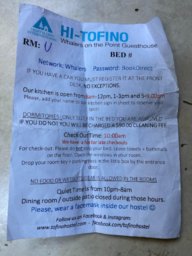 Read moreI had a very bad experience with the reservation itself.|My son was travelling to Canada and I made the reservations for him. Tofino is very expensive and this was expensive but still the most reasonable option. Even for a private room with shared bathroom the price was over 200 CAD.|However when I booked, they did not have the same type of private room for the 5 nights so I had to book 3 different rooms which is very inconvenient (for my son and for the hotel).|I made the reservation with HI Canada website and saw that there is free cancellation until 48 hours before arrival. It also said that you can cancel by 1 AM and the cancellation is by mail.|Two and a half days before arrival, I checked room availability again and saw that now the same room type (private with half bathroom) was available for the 5 nights. So I reserved this room also for the nights with the different reservations. I did not cancel the old reservation right away since it was night and my son was asleep. I waited for the morning to make sure he was OK with the change (which was partly a downgrade). Mistakenly I thought that I can cancel by 1 PM (it made sense to me as 48 hours before arrival) so only in the morning when my son woke and approved the change, I sent the email to cancel the unneeded room, assuming it is within the free cancellation period.|However I got a reply from Juliane, saying that since the cancellation was after 1 AM I will be charged for the 2 nights of the room that I cancelled (more than 500 CAD !!!) in addition to the payment for the new reservation.|I replied and explained that it was an honest mistake of confusion between 1 AM and PM, and that actually I did not really cancel my stay but only changed the room type that was now available. However Juliane replied that since this is the policy, they are charging, and only if they will sell the cancelled room they will refund. Eventually the room was sold only for 1 night so I was partly refunded, but still I was over charged with more than 250 CAD, above the charge for the room he stayed in, which was expensive.|I was very disappointed with this attitude, since I only made an honest mistake and the hotel almost didn't lose any money since we only changed the room type. I suggested paying the difference between room types but it was not approved.|So far for my bad experience.|This is what my son said about the hotel and the stay:|Location is great - close to everything you need (supermarket, pharmacy, restaurants), in front of the ocean.|Nice facilities - they have clean and equipped kitchen, room with pool table and guitars, but most importantly for me as a surfer: surf room to store board and hang wetsuit for drying.|They let you buy a reserved parking spot.|I had the shared bathroom private room (with toilet, without shower). Showers were clean and just in front of the room. The room was well equipped, and felt cozy (as well as the lobby and hostel...