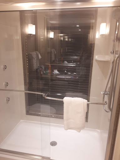 Pros: Very clean. HVAC worked well and it was cool when we wanted and warm enough when we wanted. Room was quite large with lots of storage and seating. Large TV. Free coffee and fridge. Refillable water and ice station in each floor. Nice products in bathroom. Robes were in room for use. Good water pressure and temperature. Rain shower and handheld stick in shower. Light controls for entire room at bedside. Plenty of regular and USB outlets. Modern amenities eg lit full size mirror, hard floors, led light, clean storage (hidden away). Halls and lobby were clean and well lit.