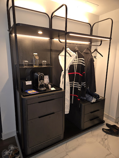 Location is very good. Peter Street can be a bit busy in places - you're in the Entertainment District after all - but that also means you're a quick walk from many of the attractions in the downtown core (and the streetcar) Check-in was slow because they only had one woman on reception when I arrived and she was spending a looong time explaining the map of Toronto to some guests. I suppose it's irrelevant because my room wasn't ready anyway, but she did store my bags and say they'd make it a priority and she would let me know when to come back...which she did. I'm Hilton Gold which they acknowledged via email and on arrival. It's supposed to get you an upgrade, breakfast or food credit etc. They often try to wriggle out of the room upgrade because of space, but I think this was a particularly poor effort at giving me a nice room. I'd booked a Corner King and ended up on the 3rd floor (lowest) available, overlooking a parking lot and facing a wall, with some loud machine outside. It's the first time I've gone back down to ask for another room, and thankfully a different receptionist moved me to the 9th floor which was quieter. Rooms are nicely decorated and the corner kings at least are quite spacious. Bathrooms are small, but have handy drawers and the hairdryer and clothes steamer are good. The water pressure in the shower is poor and you get no amenities like shower caps etc, but shampoo/conditioner/body wash/body lotion are provided. Cleaning was good. Bed was comfortable, TV was huge but laggy, nice big full-length mirror with lights and a sofa with table as well as a desk. Plenty of power outlets, and my room had a Nespresso Premium which can do hot water, tea and coffee and a mini fridge.