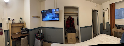 Read moreNot a fan. Would not stay here again unless I had no other choice. The lobby decor is nice, very chic. The front desk encounter was pleasant enough, the location is good but the rooms are awful and the stay was awful. The noise and busyness in the hallway always started at 0700h and wouldn’t stop til mid afternoon. You can hear the guests staying next to you and across from you loud and clear whether you’re in bed or in the bathroom. The housekeeping staff in the morning were loud. Laughing and talking to each other across the hall in full on loud voices. Both mornings I had the ‘please don’t enter bc I have a dog’ sign on the door and I still had housekeeping knocking and trying to enter. The bathroom is tiny and wish they could’ve planned better. I understand space is an issue but what’s with the tiny sink and then shelf right in front of it. For my height, when I brush my teeth I’m trying not to bonk my head on the shelf but one wrong move and I’m spitting and getting water on the floor. There’s dust ever in the room, the shower wasn’t clean when we got here. With long hair and pubic hair on the floor. I found one bug on the sheet, but checking the room I didn’t see anything else thankfully. They have a steamer in the room so I used that to steam the sheets myself. And the view… maybe we were unlucky, but the view was of a brick wall of windows of other room which made the room super dark even during the day. This place just doesn’t feel clean or comfortable. If you’re sensitive to noise and a lot of movement when you’re trying to decompress after a long day, this isn’t the place for you. I tried to take photos of the dust, but it doesn’t pick up on camera very well. I only have one to include that could get my...