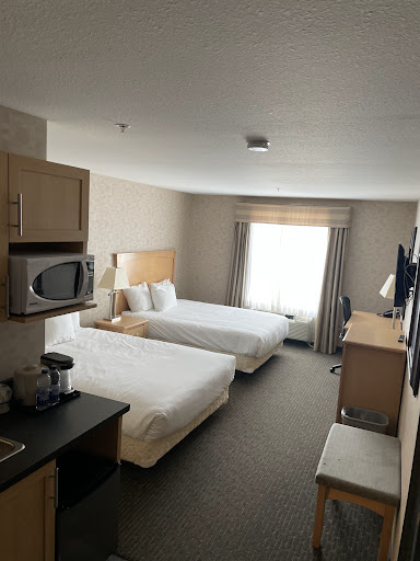 Read moreDefinitely not a 3-star hotel! I usually don’t leave nasty reviews but want to warn others. Poor service, low amenities and dirty: I found a bed bug crawling around in my room. The only nice part is the hot tub / pool area and location. Awful front desk experience: the check-I process was slow and the lady was coughing all over the desk and payment cards without covering her mouth (Covid is still circulating…), the checkout agent didn’t offer any compensation or apologies for the bed bug. The halls are run down, the convenient access to Tim’s and the next door restaurant feels creepy with poor signage. The room is surface clean only, the curtains and bed skirts have odd stains. The bathroom is tiny and dirty, the towels are old. The bed is probably one of the worst I’ve slept in a hotel. Too firm, the sheets were hard and small old pillows. The TV is too high up and be careful as they do not clear your Netflix and Prime credentials after your stay, the live channels had a weird wave...