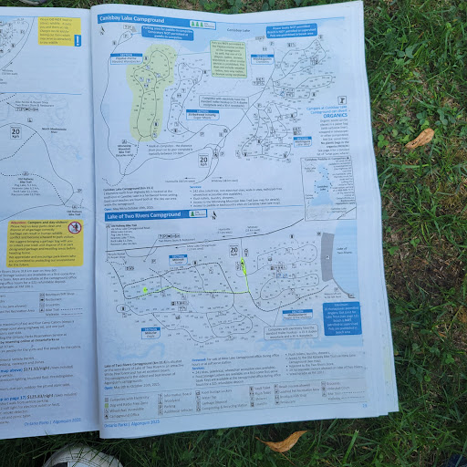 Read moreThis is my first camping. So first of all, I have no experience in camping. I am looking for convenience more than other considerations. This Lake of Two Rivers Compound met my expectations. It has quite complete facilities: washrooms, water, shower room, and even laundry room. When I booked it, I was also concerned about living in wilderness and about wild animals. So I chose a spot very close to these facilities. Maybe to many experienced campers, this choice has no privacy (saw some reviews which complained), too noisy, my site was just across the lane where washrooms, shower rooms, water tap, laundry room are located, to me (Again, I made this comment because I had no experience in camping 😄), it's perfect and leave me less worries. I don't need to run around to look for them when I need them. Privacy, yes, overall, campsites are relatively close, but no problem to park cars, some families really set up quite complicated "housing" to my standard, all can fit. Again, I feel safer in this way to be a bit closer to each other. One or two kids screaming, but they are kids. So again, I felt lucky about all my "neighbours". Secondly, some reviews complained that the washrooms were not functioning, the shower rooms were not functioning. But I observed. During my stay, the washroom, to be honest, cleaner than even some washrooms in downtown Toronto. Shower room was Ok. I only felt lucky. And the staff came and checked quite often. The third, about the noise from highway 60. It is true. However, again, as a newbie, noises may scare some big animals? That's what I thought. And I had no trouble in sleeping. And the campground map marked which sites will hear noises from highway. Maybe people who care about the noises just try to avoid these sites. The noises from highway was totally OK to me, but I was waken by the singing of the geese. Haha. This is nature. It's OK to me, too. I also lit up my first campfire and cooked something for myself, which was exciting to me. The wood: I saw one review, complaining that the wood they bought from Mew Lake campground office was wet. One thing is true: we need to buy wood from Mew Lake compound, which is about 1 km away from Lake Two Rivers' Campground. The wood were packed nicely in bags and left in a shed (if I can call it a shed,) attached to the office. There are two types of wood: the wood for campfire and the kindling wood, easy to use. The lady in the office there was nice helping me guess how much wood I will need. The wood I bought has no issues because it has been very dry in Ontario for a while. I was lucky again. And there is one store (which offers a lot of stuff that we will need for camping) and a cafe and grill (which can provide breakfast, lunch and dinner if you don't want to cook) which is about 500 meters away from the campground. Very convenient. For canoe and kayak, if anyone is interested in rowing canoe or kayaks on the lake, there will be two companies which deliver the boats to the lakeside in the morning up until 10:30 and there will be another time in the afternoon, I think. According to the website, usually people can book in advance for 2-day use, for one day, it will depend on that day's specific situation which is available. I was lucky. I got one day kayak rental. Rowing on the lake was fantastic experience, strongly recommended. The lake was beautiful and peaceful. With all the fall colours around, I have nothing to say, just feel lucky and happy. So, to me, I am very happy to choose Two Rivers' Campground to start my camping trip. To me, this is a perfect camping experience. All the staff there worked hard to keep the environment as good as possible for all of us. Many thanks to them. I will be back for sure.