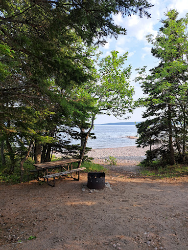 Beautiful views of the lake! Sites have 30-amp electric only. There is now a water fill station in the campground to fill RVs as well as water sources for tent campers. For sani-dump, you need to go to the White Sands campground to the east a few miles. Convenient if you are headed that way; not so much if you are headed west. But it is right at the campground entrance and easy to access. Campground was quiet. There is a little road noise, but the closer you are to the lake, the further you are from the road. Purchased firewood at the campground and it was lousy - hard to get much more than smoke from the wood. We had site R-13 and it gave us a great view from our fifth wheel door side of the lake. We hiked the Rainbow Falls Trail at the Whitesands location and the Nature Trail there as well. Also found the red chairs in Rossport, Schreiber and Terrace Bay. Fun stay! Great phone service. We...
