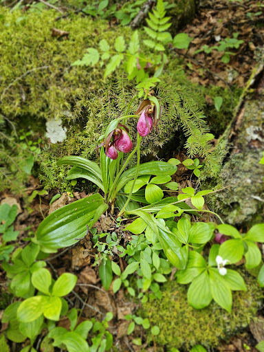 The boardwalk hike to see Rainbow Falls is gorgeous! We saw a few ladyslipper orchids. There are 147 steps down to the bridge and then, of course, back up. But you can see the start of the falls within just a few steps.