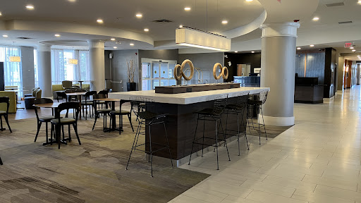 Read moreMy husband and I had a lovely night here. The hotel is being renovated so one elevator and part of the main floor looked rough, but there was no noise or disturbance that we noticed. We booked a King bed room but they were overbooked so we were upgraded to a jacuzzi room which was really lovely, though I don't think we would have paid the extra charge for it as an option. The jacuzzi was a very comfortable size for two tall adults, and it filled quickly and had coloured lights and jets. The jets only had one speed though, which was so loud we could not hear the tv over it. But we just put on captions while the jets were on and it was fine. The tv is fairly large and is on a swiveling wall mount so you can see it from the tub/bed/chair. The bed was nice, though a bit too soft for our preference. The sheets and pillows were clean (slightly bleach scented which did not bother me but might bother others) and they had a textured kind of sheet for top layer rather than a bedspread, which looked nice, was soft to lie on, and seemed freshly washed. The overall cleanliness was very good, but not immaculate (there was an old cheesie on the floor by the bed, and a little bit of soap scum in the jacuzzi that I could feel but not see). The room and bathroom had no smell and was bright and well climate controlled (the ac was set quite cold when we came in but the controls were very easy and responsive and we easily got the room to a comfortable temperature for us). The jacuzzi is located in the corner of the main room, and the rest of the bathroom is off the entrance to the room. It is a bit of a bizarre configuration with the sink right off the entrance and then the toilet and shower behind a door by the sink. There was a mini fridge in the room which kept our food very cold. There was one very nice chair and footstool in the room, but if you are more than one person you'll have to sit on the bed to eat, watch tv, etc. There was a bistro, dining area, and little tuck shop type thing on the main floor but we did not use them. The location is great, we could drive in just a few minutes to multiple resturants, a mall, and a movie theatre (though walking would be harder as you have to cross the highway). We noticed another family appeared to be using the eating area in the hotel lobby to eat their take out food, so that may be an option for larger groups or those who don't want to eat on the bed. We only interacted with the staff to check in and out but that process was very quick and easy, and the staff member was polite. The hotel also has a pool and hot tub but we were satisfied with our jacuzzi so we didn't try those out. There is also a gym. Overall I would recommend this hotel and will probably visit it again next time we...