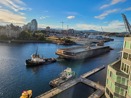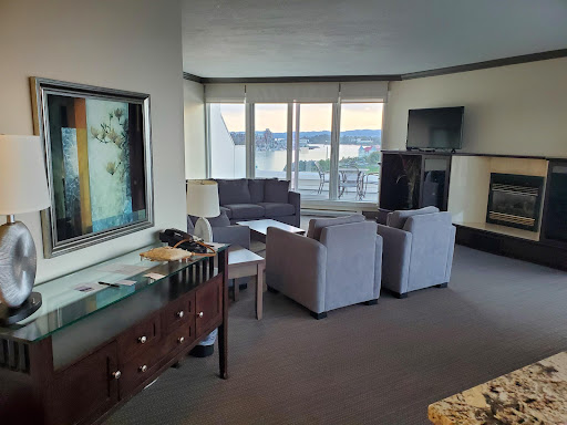 Read moreBooked a very special Milestone Birthday for my wife this May and keyed in on the location of this Hotel. Although a little dated, it has been well renovated, is very bright and very clean. I booked a package through Expedia (Air, Hotel, Car Rental, etc) then went directly to the Property to upgrade. Staff were fantastic and did everything to make sure this was a very special occasion. The upgrade was inexpensive but what was delivered can only be described as outrageous! Full 1bdrm Penthouse Suite with over 500sqft of Patio over looking the Harbour. Full Kitchen, Full size living room, 4pce bath plus jetted tub and an outdoor enclosed gazebo with 2 sided fireplace into a full size living room. We walked just about everywhere and did a couple water tours (Victoria Harbour Ferry) plus the Butchart Gardens. One of our favourite places to eat was JR Slims, right across the street from Main entrance. The best Nachos were through the basement on the water side in Lido Waterfront. The Red Fish Blue Fish had huge lineups so if you are walking around early in the day go hungry and go early. This was an Incredible trip and an incredible property. Major brownie points...