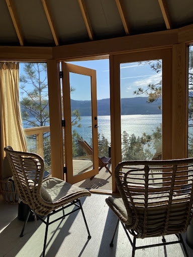 For our family reunion in July 2025 we booked the entire site for 3 nights. The facilities are very well cared for and they have pretty much thought of everything. Jane and Daan responded promptly to every question we had and their info package is comprehensive. Definitely 10/10 on communication. I was worried the lack of electricity/fridges might be a problem for our large group but we managed with a bit of planning, a couple of trips into Vernon and ice from the nearby convenience store for our coolers. There are 2 toilets and 2 showers which were modern, clean and well maintained. Since we were a bigger group we brought one trailer, which we parked in the parking lot, and a couple of our own tents. The tent location is below the rest of the site but they had wagons for taking the gear down and the "kids" were okay making trips up and down the hill. The individual sites are gorgeous and well designed to provide a bit of privacy with lovely seating areas. There were no stairs down to the outdoor seating area at the yurt and the path looked a little tricky so we didn't use that one. The yurt does have a lovely balcony overlooking the lake. There are several types of seating provided with sails and bamboo pergolas for shade, but we also took our own lawn chairs making it easy to chase the shade.The shared terrace provided a great spot for our group to gather and there were a couple of folding tables, a two burner cooktop and 3 charcoal bbqs that we used for our group meals. The site has gravel paths and the parking lot has bigger rocks, so sturdy shoes were definitely helpful for those who aren't as agile. It is so picturesque with views of the lake from every spot and we even had a mama deer and her little twins visit. In the afternoons we piled into cars and headed 5 minutes down the road to Killiney Beach which was also perfect. We had an amazing time and definitely...