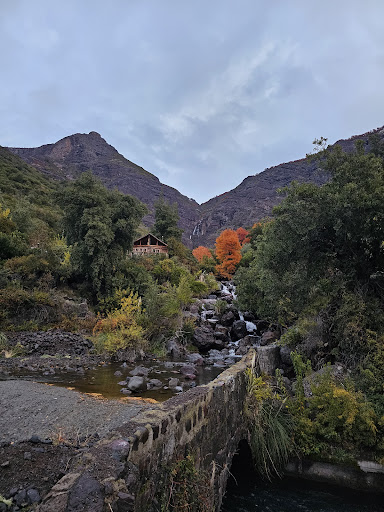 En relación al viaje, desde Molina ya es toda una aventura, los parajes son hermosos, el camino es de fácil acceso y se encuentra bien señalizado. En relación al parque, es un lugar increíble, cuentan con varias cabañas, pero todas con una vista privilegiada, hacia el río, la cascada o el volcán. Cada una cuenta con una tinaja (la cual pudimos disfrutar en la noche y fue una delicia, un momento muy agradable mirando el cielo estrellado), cuentan con calefacción a leña, (a nosotros nos recibieron con la cabaña calentita :) ) la cocina está equipada con todo lo necesario para cocinar, las camas muy cómodas y todo muy limpio al igual que el baño. Cómo actividad al aire libre, pueden hacer caminatas por el borde del rio, hacia la cascada o hacia los miradores, nosotros llegamos a un mirador en bicicletas que arriendan en el mismo parque. Don Mauricio fue muy gentil, muy preocupado en todo momento de atender nuestros requerimientos. En algunos sectores aún se encontraba con nieve, esperamos volver en primavera para poder disfrutar un baño en los pozones que se hacen en la bajada de la cascada. En relación a la conectividad, la señal de internet es inestable, pero cuentan con una terraza Wi-fi, dónde la señal es muy buena, ese espacio cuenta con mesas, chimenea y tienen hasta juegos de mesa para...