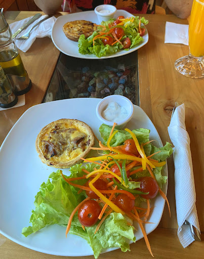Una ternura este sitio... y también un pequeño tesoro dentro de la ciudad! Fuimos a almorzar al café que se encuentra a la entrada del hotel. Esta vez probamos unos gnocchis con pesto y una lasaña, además de un trozo de torta keto sin tacc. La comida me gustó, aunque para mi gusto le faltaba sal. Sin embargo, el trozo de torta estaba impecable, muy suave y ligera. El servicio estuvo muy bien también, la comida demoró un poco más de 20 minutos en llegar, pero nos entretuvimos conversando y el tiempo pasó rápido. El interior de la cafetería estaba decorado de una forma muy linda y acogedora, con mesas y sillas de madera, floreros adornados con pequeños arreglos artificiales de colores suaves y bastante limpio y organizado. El lugar está ubicado muy cerca del centro de Concepción, donde hay mucho ruido y movimiento. Lo más llamativo fue que al salir, nos dimos cuenta de la calma que se respiraba dentro del local, nada de ese ruido llegaba hasta donde estábamos. Se agradece un montón la pausa dentro del caos de la ciudad. Seguramente...