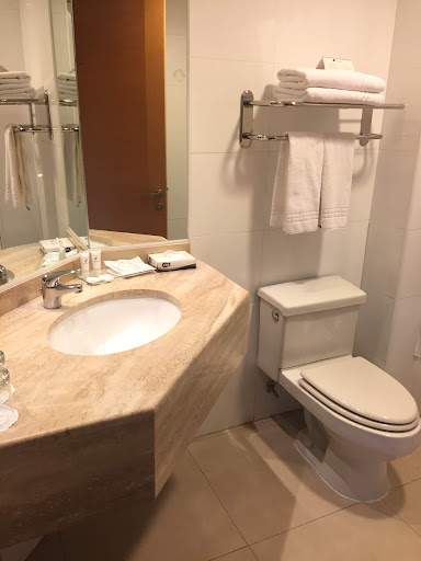 Read moreExperiência ruim desde o primeiro minuto. Reservamos por Booking, chegamos 13h sem perceber que o check-in era às 14, a recepcionista apenas repetia a mesma frase "apenas após as 14, apenas após as 14", pedimos pra adiantar fichas, cadastro e pagamento, mas só repetia "apenas após as 14". Estávamos cansados de uma noite mal dormida e de acordar cedo e dirigir desde 6h da manhã. Essa pessoa não foi simpática, não nos ofereceu um lugar pra sentar, não ofereceu senha da internet, não avisou que havia um restaurante aberto no local, não avisou que poderíamos deixar a bagagem e o carro pra poder ir almoçar, foi antipática e nada solícita, parecia não querer que entrássemos no hotel. POIS BEM, saímos pra comprar alguma coisa e voltarmos pontualmente às 14h, pra pelo menos não pegar fila, essa pessoa ainda teve a pachorra de RIR da nossa cara. Logo formou-se uma fila atrás de nós. Aí ela não conseguia passar o cartão pra fazer o pagamento, o valor combinado pelo site em dólares, com o desconto de IVA para estrangeiros, uns 10 minutos depois começou a nos acusar de errar a senha (muito raro acontecer), não ter dinheiro na conta (tinha sim, inclusive transferimos no dia anterior), ter passado o limite do dia (havíamos comprado 3 águas apenas), o cartão não funcionar (pagamos menos de 20 minutos antes as 3 águas, com esse cartão). Aí ela queria tentar passar em pesos, sem desconto IVA, tipo 20% mais caro. Podia ter chamado outra pessoa, podia ter nos deixado pagar no dia seguinte, podia ter sido simpática ao menos. Mas não. Com muito custo tentou novamente, agora mostrando a mensagem da máquina de cartão pra nós, EIS que passa como se nada tivesse acontecido. Seguimos para o quarto, no subsolo, embaixo do restaurante, e aí foi o dia todo até meia noite ouvindo passos, cadeiras arrastando, gritos, crianças correndo, o tempo todo, sem parar. Não há elevador, não há ninguém para ajudar com as malas, há carrinhos mas não servem pra nada pois os quartos ficam abaixo e acima do piso térreo, acessíveis apenas por escadas. O quarto é espaçoso e confortável, mas não se tem um momento de silêncio. O chuveiro oscila muito entre o muito quente e o gelado, impossível tomar um banho adequado. O quarto tem duas camas de casal minúsculas e apenas uma cômoda. O restaurante é caríssimo e tem apenas uma opção sem carnes, pelo menos o sanduíche é saboroso e bem servido, o atendimento do restaurante também é meio confuso, além disso poderíamos pagar em dinheiro na recepção mas não com cartão, com cartão apenas no check out... Quando finalmente conseguimos nos instalar o restaurante, estava fechado pelas próximas duas horas, mas foi interessante: estava fechado apenas para nós, pois havia pessoas comendo e quando chegamos, pontualmente na hora que deveria abrir já havia outras pessoas comendo, e a comida demora uns 20 minutos pra chegar, um sanduíche e batatas fritas. O estacionamento parece ter poucas vagas para a quantidade de quartos disponível, de fato na manhã seguinte estava lotado e com carros parados nas rampas, atrapalhando a passagem de quem queira sair. Decepção total, não recomendo e não voltaria nem de graça. A única coisa boa desse hotel é a velocidade da internet. As paredes são finas e ouve-se tudo dos quartos ao lado, conversas, risadas, tv alta, ruído do banheiro... Pra finalizar a noite de horrores, pouco depois da meia noite começou um arrastar mais alto, acredito que dos funcionários fazendo a limpeza do restaurante, com música alta. Ainda não terminou: fomos acordados às 5 da manhã pelos roncos do vizinho de quarto, às 6h já começou o arrastar de cadeiras no restaurante. Consegui dormir 4h nesse hotel. Último tópico, café da manhã e checkout. O café da manhã é simples e a qualidade é duvidosa. Pão sem gosto, suco sabor conserva, ovos frios, queijo sem graça, doces ruins e extremamente gordurosos. No check out, por sorte estava outro funcionário que era menos mau humorado e teve que passar APENAS duas vezes o cartão para fazermos o pagamento. Procure outro hotel....