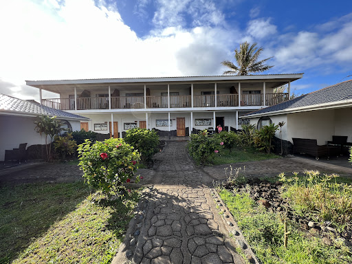 Matariki Sunset Apart Hotel. Our room was in the two-story back building, #9. It was a surprise that the bathroom is on the first floor and that the stairs are narrow. There are no air conditioners nor tvs in the hotel. It has all the necessities for cooking and no condiments or paper towels. They do provide a two gallon complementary water bottle. There is no daily housekeeping, our bed sheets were changed because we asked. They provide beach towels and a clothes hanging rack. There are restaurants nearby. There is wifi in the public areas but it worked well in our apartment (#9). The grounds are pretty, full of flowers. There is parking for about 6 cars. The employees were friendly and speak English but they are only here in the morning until 1pm. They communicate with the guests with WhatsApp. I recommend you get it. There is an electric fan. We were here one week and electricity failed twice for about 5 hours. You can hear adjoining rooms and roosters. The location is great. There is a cafe within the grounds- good breakfast and pastries (La Boulangerie). They pick you up (leis included) at the airport and drop you off. The views from the second story is great, it compensates having the bathroom in the first floor. The hotel can arrange for excursions (with Aku Aku Tours) and we found them to be good, and the guides knowledgeable. Our apartment sleeps 7 including two sofas (room for 3 with a queen bed and one more. A room with 2 beds, and 2 sofas in the first floor). We did go to a nearby supermarket (Henua Market), a 6-minute walk. We rented a car only one day for 50,000 CLP from Haunani Rental Car and it was good (stick shift cars are common). DO...