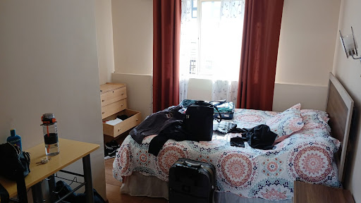 Después en la mañana la que limpia y hace el desayuno, llegamos 10 min antes de la hora de término del desayuno, y cuando le aviso que nos vamos a sentar (estaba en una habitación encerrada), al darme vuelta empieza a hablar cosas a la espalda "ahh pero si es hasta las 10 el desayuno no más y..." Algo más que no alcancé a escuchar, me doy vuelta y le digo, hay algún problema? Y se hace la loca. No sé porqué la gente romantiza tanto algunas cosas como el "buen servicio" o "buenos desayunos", en la reserva de Booking hablaban maravillas del sitio y lo único "bueno" es la ubicación que es relativamente cercana a todo y nada más. El desayuno es un pan con un par de láminas de queso y jamón, un yogurt y te dejan un café instantáneo en sachet y un té. Eso no tiene nada de especial, no es "un desayuno espectacular". Hasta con el gatito que tienen nos pasó algo malo xD el gato weon nos meó en la entrada cuando íbamos a entrar de noche, se da media vuelta y nos manda el chorro.