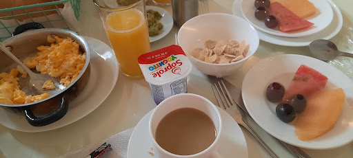 Read moreEncontramos este hotel por Booking y a pesar de algunos malos comentarios se veía bastante bueno. Pero llegamos y nos fue re mal :( primero, las habitaciones son super heladas, entra todo el ruido de afuera (especialmente molesto a la hora del desayuno, se escuchaban desde las tazas a gente gritando afuera, de los tres días que dormí ahí, ninguno dormí bien por despertarme todo el rato con el ruido), en nuestro casa la ducha tenía muy poca presión de agua y la temperatura era tibia, no llegaba a caliente, el closet no tenía ganchos para colgar la ropa, solo había un velador (habitación matrimonial). Nos vinieron a poner el Telecable cuando ya estábamos en la pieza, el que ni usamos porque nunca llegó el control tampoco. El desayuno estaba bien, nada del otro mundo (te ofrecen pan con algo, cereal o fruta, te o café, leche, jugo y Queques) pero se notaba que algunos días le faltaba organización. Nunca hubo mucho interés en atendernos, si no es por Google nunca hubiéramos sabido que había una zona de té y café 24/7 en el mismo hotel, tampoco nos explicaron que para que asistan tu pieza debías avisar en recepción y dejar la llave, lo supimos cuando ya habíamos vuelto por la noche. Lo único que destaco es la "atención" cuando necesitábamos algo, porque eran amables, solo que no había interés más allá, yo no...