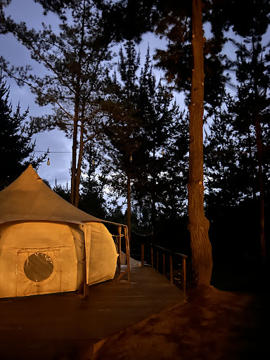 Es la primera vez que voy y no será la Ultima! El Lugar es hermoso, en medio del bosque, mágico, tranquilo y super equipado. Nos tocó lluvia y en ningún momento pasamos frio ni se pasó el agua. Las carpas son excelente calidad y super equipadas con estufa/frigobar/hervidor/tazas/té/tinaja privada/baño privado/jabon/shampoo/balsamo de boldo que producen ellos mismos y son exquisitos!!! El agua de la ducha mega calentita!! De verdad vives en la naturaleza muy comodamente!!!