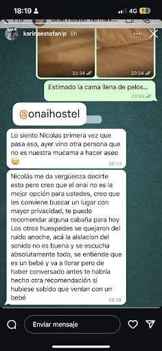 We made week long reservations for Chilean National Ski Races at Onai Hostel. Reservations were made 2 weeks in advance and we paid 50% as reservation deposit. No official confirmation of reservation was provided. We called the reservationist to reconfirm, she seemed perpetual confused (acted perpetually stoned really) she made random changes to our dates and rooms. Therefore we called back and re-confirmed everything.||Arriving at 9:30 PM, there was no receptionist / staff / owner present. A guest indicated that the owner was at a party, and this guest informed owner of our arrival. Owner called my wife and instantly began to berate her and insult her, “we don’t need you, we have a waiting list and you don’t have a room and we don’t need or want people like your family” For the record; we have never met owner, have no dealing or interaction with him, beyond reserving this room via his receptionist and wiring him several hundred dollars.||At 10:00PM on one of the busiest nights of the year, we were left without lodging. (We found lodging in the clean, professional “Borde Andino” and later “ Las Bravas”). ||After my family was settled, I called owner to understand the situation. He was at a loud party. He first accused me of making the reservation incorrectly. This was a blatant lie. We triple confirmed it. He then said, I was not allowed to stay at his place, and he did not like me or my wife. I repeat that we have had zero interaction with him. I suggested that he could -at a minimum- let us know he was cancelling our reservation before taking our money and before we arrived late at night, especially for a national competition in a remote area the next day.||This last point – suggesting he be responsible for his business and his actions– was evidently a grave insult and he began to scream at me, insulting, swearing, yelling. So I hung up. ||Clarifications: |I ran a tourism company in Chile for 17 years. I understand there can be problems. But this is unacceptable service, even for Chile. My company never had a problem like this, or handled in this way.|The owner is a somewhat famous Chilean snowboarder, if you have experience with the 3rd world Latin mentality you will understand the overarching primary importance of ego, in every interaction. On the positive side, I do appreciate that he did return our deposit.||There are many fine lodging alternatives. Get your reservation in writing, directly from hotel not a (likely false) booking agent. Get a front dest number and call the place the day before, getting the name of the receptionist / owner. The area is beautiful, make sure...