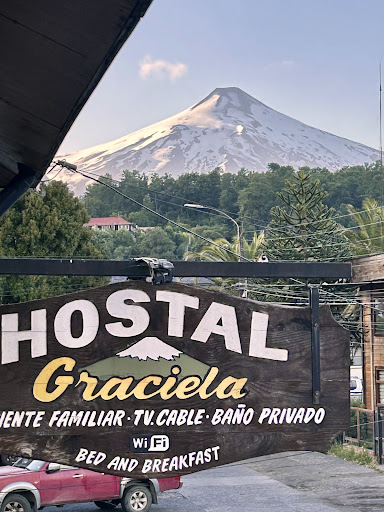 Read moreI stayed at Hostal Graciela for 5 nights and everything was very smoothly arranged. I already started to be in touch with the hostel via whatsapp before my stay, which came in very handy as my flight was delayed for 2 hours and I could inform them easily. Even though I arrived only around midnight then it was no problem and they were very understanding and someone was waiting for me when I arrived. ||The hostel is located very close to the city center, only one parallel street to the main street, in a side street and therefor very quiet. Stepping outside on the street you get a stunning view on the volcano Villarica. ||The room itself was good and clean, very comfortable bed! For myself the double room was a good size, for too its probably a bit cramped. I had a room on the ground floor and there was a window, but it was very close to a wall, so the room was rather dark. The bathroom was rather small, but has everything one would need. ||I think the hostel is family owned and everyone is very friendly. They don't speak any English but they really make an effort (getting out some English words or helping you out in any way). I managed fine with a few Spanish words only and their and my effort to make it work! ||Breakfast was basic (even though i think you can get more options when you know your Spanish breakfast vocabulary! :D ). There's also a kitchen that...