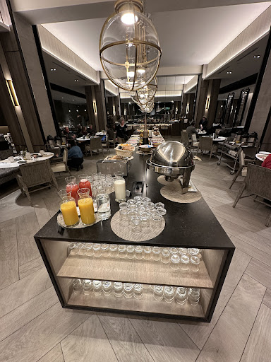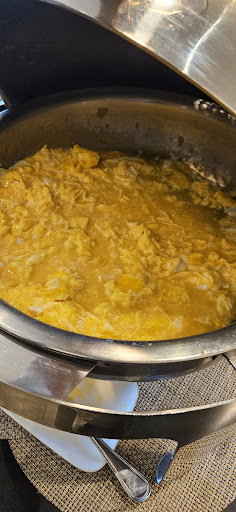 As far as the breakfast goes, I was very very disappointed. The eggs were literally watery. (I asked for the eggs to be scrambled well and well, you can see their definition of well done in the third pic) They don't have pancakes, they have crepes with a filling. I ordered it since it's not part of the buffet and it was not good at all.. not to mention cold. The breakfast is exactly what everyone else said in the other reviews. It's such a shame for the lobby to be so beautiful. We did find a great burger spot and pizza spot about 7 mins...