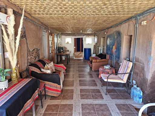 整條路感受乾季的風沙與該地的泥磚建築,比較接近玻利維亞的風情,但是對外公路就可以看到現代化公路 收費部分無法使用刷卡機,所以智利必有的外加稅款必有 即便如此加入之後也大概一天一千多一點 泥磚內的感受十分陰涼,晚上沒有暖氣,有一個很大的庭院但是人工光源不足,泥磚感覺上衛生不容易乾淨與衛生良好畢竟不夠清爽,主人不一定常在,第一次按下門鈴也是要等一會才有人應答 不一定在現場 但是大概一會才會出現 這些都是現住才會發現的問題 這裡有很大的空間可以曬衣服 受惠於本地多年不下雨很乾燥 曬洗衣物很方便 印象是對於自助旅行者很方便的設施 據說老闆友善樂於助人 很和樂就是 不一定在家 毫無問題使用廚房等設施 與其他入住的房客見面聊天的好機會。 旅館非常簡樸,但非常乾淨舒適。 安靜甚至幽靜 提供數加侖飲用水。熱水淋浴