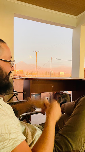 Subir até a varanda foi como encontrar um segredo guardado para mim: uma vista deslumbrante do deserto com por do sol sempre rosado. Poder apreciar esse panorama tão especial foi um dos pontos altos da minha experiência no hostal.