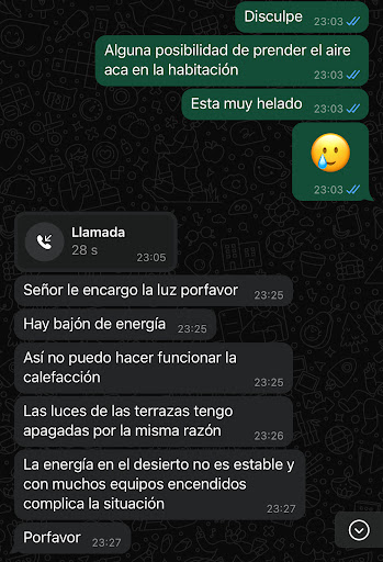 Read moreNunca mais nos hospedamos no Hotel Don Sebastian. Atendimento ruim e o sistema calefação é pior ainda. Chegamos em San Pedro de Atacama por volta das 22:00, mas o portão estava fechado (ele fica 24h fechado), tocamos a campainha que tem no portão e ninguém atendeu. Depois de uns 20min esperando do lado de fora, no frio, conseguimos sinal de celular e depois de ligar 3 vezes um homem atendeu e veio nos recepcionar. Ficamos extremamente irritados, pois avisamos previamente a data de chegada. Assim que entramos no hotel, recebemos instruções sobre a água e calefação. Nos explicaram que por estarmos no deserto as toalhas eram trocadas a cada 3 dias e o sistema de calefação era ligado apenas durante a noite, entendemos a situação e concordamos. Porem o "durante a noite" do hotel significa das 23:00 às 2:00. Eu e minha familia dormíamos cedo pelo fato da maioria dos passeios serem de manhã cedinho e acabávamos dormindo com frio e ainda tiveram 3 noites que todos nós acordamos no meio da madrugada morrendo de frio porque a calefação tinha sido desligada (ficamos 4 noites no total). Além disso, teve um dia que fomos fazer o passeio do tour astronômico, que acontece durante a noite, pedimos que ligassem a calefação antes (por voltar das 20:30-21:00) e voltamos às 00:00 e a calefação estava desligada e tivemos que dormir sem calefação, foi a pior noite porque estava muito frio. Reclamamos de terem desligado, porem fomos informados que como pedimos que ligassem a calefação antes, eles desligaram antes. O atendimento do hotel é péssimos, pessoas muito rude e a recepção não é 24h. Não recomendo o Don Sebastian para ninguém, a localização é boa, porem existem outros hotéis pela mesma área.