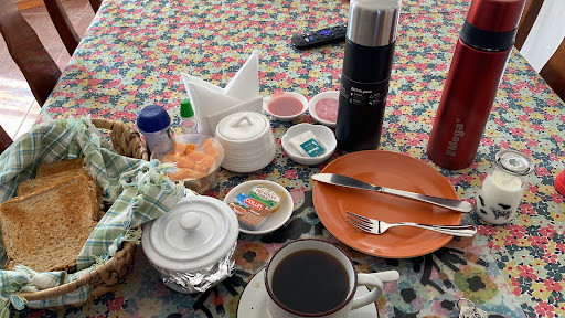 The lady that takes care of the property on behalf of the owner is very friendly and helpful with information. ||||Up to three rooms (5 persons) share a bathroom, but there is another unit on the first floor that has it’s own bathroom. In the shared bathroom, it could be a bit tight for 5 people to use. The layout is a long bathroom that connects two of the rooms to the room with a queen bed. The bathroom itself is a bit run down, with moldy corners and peeling paint, but the water pressure is good. There’s a sign limiting you to shower no more than 5 minutes, and telling you to throw all toilet paper in a bin, and not in the toilet. There is a bathtub with aluminum-framed sliding shower door surrounding the tub, like your grandma’s house, built in the 1950’s might have.||||The room was orderly, but it could be cleaner. There are dust bunnies in floor corners, and there seemed to be an ant issue, especially in the bathroom. They tried to deal with them, but the ants came back. We also had some ants on the floor of our room around the bathroom entrance.||||Our bed was comfortable, but the room was a bit stuffy even with the windows open. There is a fan to help air circulation, but we didn't see any heater in the event of cold.||||Wifi functioned well and breakfast included better breads than we’ve had elsewhere in Chile (more like brötchen typical in German breakfasts), but to say it is the best breakfast in all of Chile is an exaggeration. Coffee is Nescafe powder and the water tastes of the years of hard water build-up in the thermos. There is muesli, yoghurt, marmalade, some fresh fruit, cakes, sliced ham, and cheese as well, but all average.||||At your disposal is also a patio and kitchen that is orderly and well maintained, but it could be cleaner as well, especially the refrigerator. The germaphobe will have issues.||||Location wise, it is only a few blocks away from the main plaza. You can hear the noise from there, but this doesn't go on through the night. While it is generally quiet, there is a rooster nearby that starts crowing way before dawn and stirs up sleeping dogs, which may disturb...