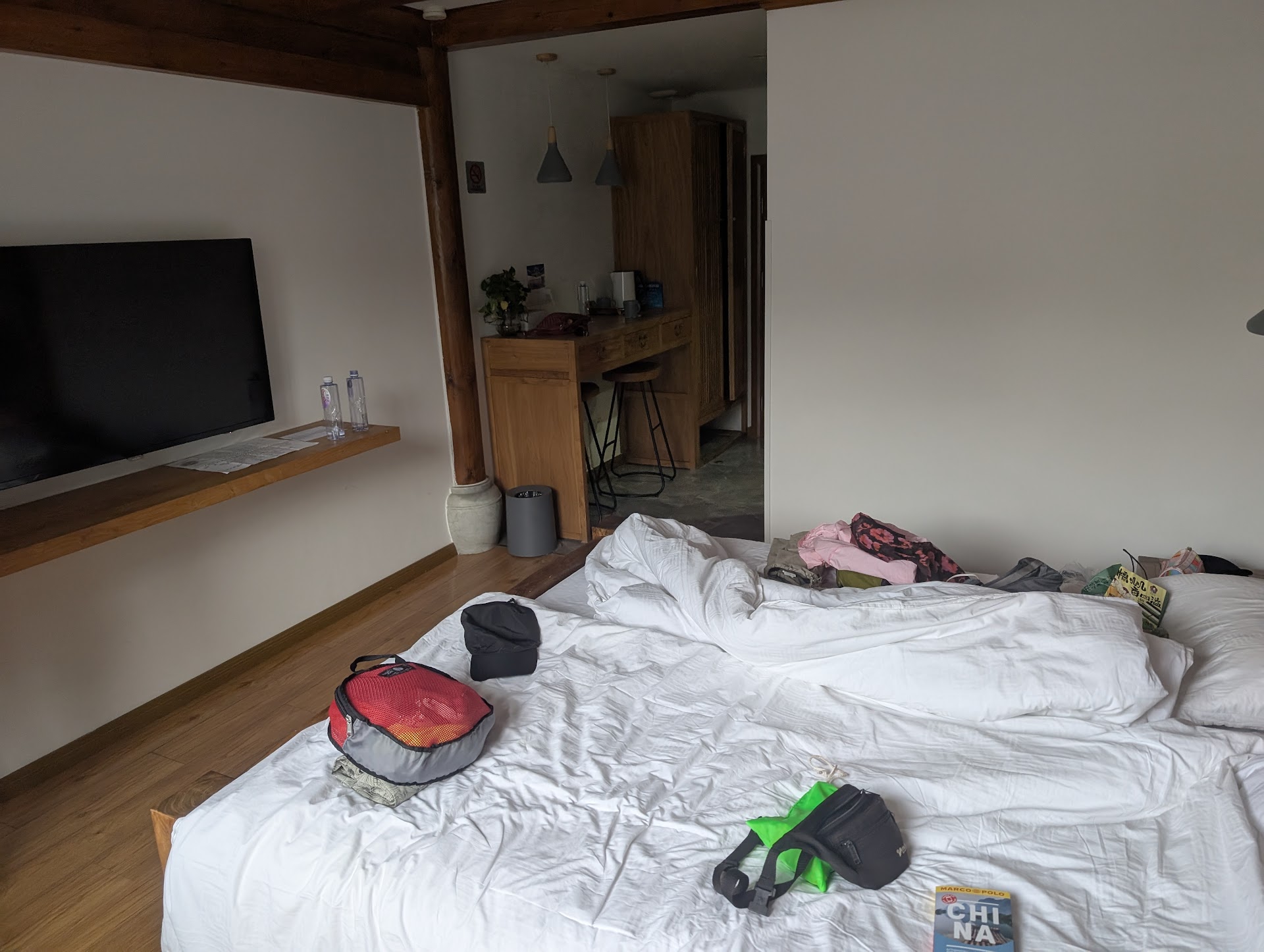 Read moreWe stayed 4 nights in April 2024 and had a great stay. We booked a super deluxe double room via Booking.com for ¥864 a night (around €112). The room was quite spacious with a seating area and a table with bar stools. It looked exactly the same as the photos online and was in excellent condition. ||Communication with the hotel through Booking was excellent. They organised an airport pick up for us on arrival for ¥200. The staff, Zachary and Sunshine, were also extremely helpful during our stay. For example we didn’t know you have to book to visit Tiananmen Square and Sunshine did it for us on her phone and also helped with a restaurant booking. She also booked our return taxi to the airport. ||The hotel is located in an extremely busy hutong which is full of touristy shops and food outlets and is packed at all times. Off this hutong are quiet ones which are nice to wander around. You can walk to Shichahai subway station in around 10 minutes. The Houhai lakes and drum and bell towers are also in walking distance. ||The hotel is listed on Google Maps as ‘Beijing downtown backpackers’ so presumably it used to be a hostel. The reception and corridors look like a budget hotel and could do with some redecoration. However, the room itself was nice with new furniture and good amenities. The only thing missing was a fridge and a couple of things need updating in the bathroom. Despite the busy location, the hotel was very quiet. Note that the hotel does not offer any breakfast options. There are a couple of cafes nearby as well as a Starbucks.||Overall a good option and reasonably priced....