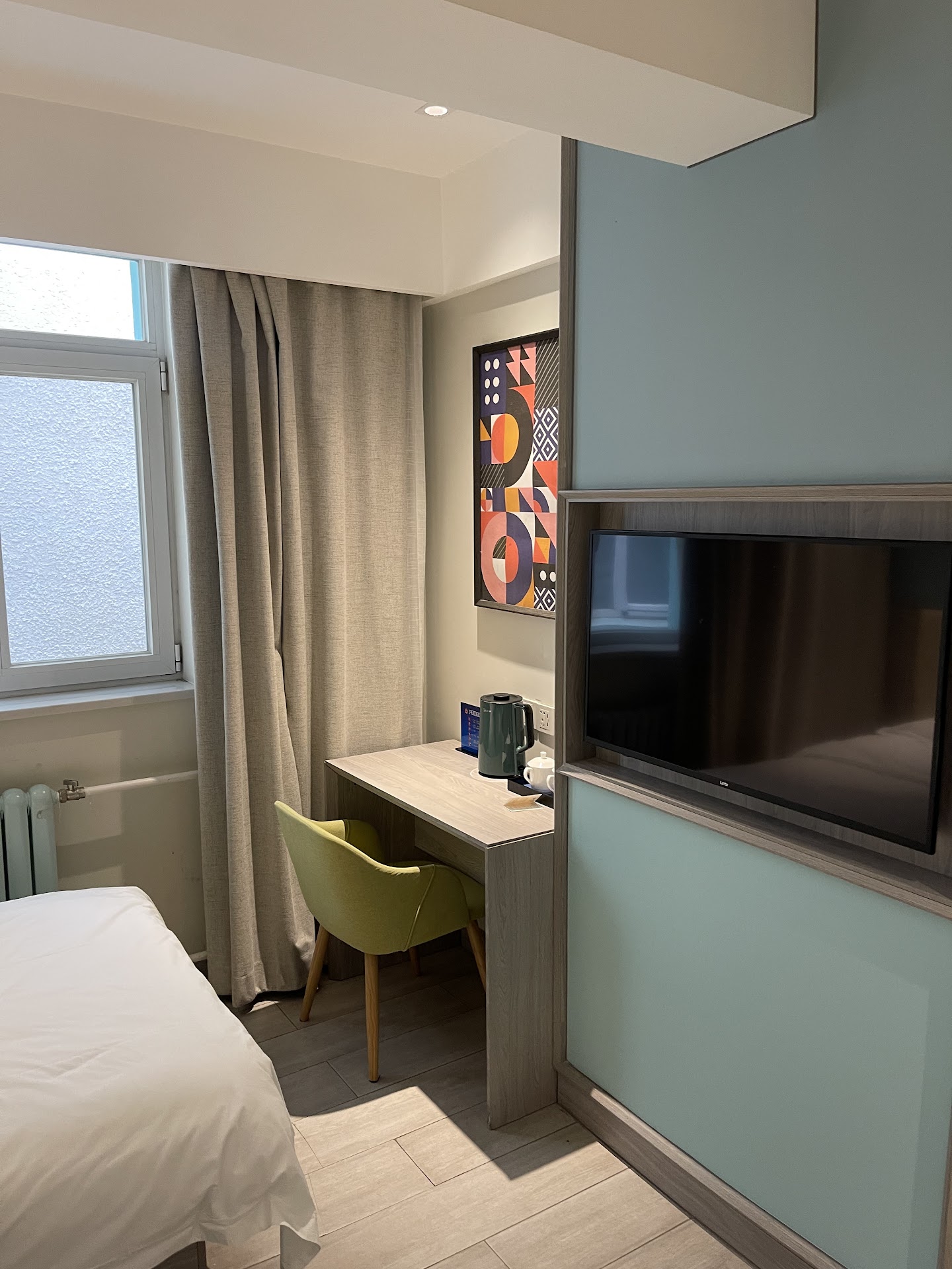 Read moreFirst of all , we stayed here over Chinese New Year, so it is only expected that the shop, restaurant etc. we’re closed, that was to be expected! Taking the hotel by itself, I have nothing good to say apart from this place apart from: it was next to a metro and the rooms were warm and clean. I am really not that hard to please but we had cold water on the first morning, leading to 2 staff coming up rummaging around in the (small) bathroom for 20 mins while I looked on in my pajamas, kind of eager to have a shower and get out for the day! Staff spoke no English really. Fair enough. But when I wanted to find a pharmacy, they didn’t have a clue where one was, even when it was translated. There were some toiletries in the bathroom, which we used a little. Didn’t need them, but we assumed they were free, considering there was no indication they weren’t and that stuff usually is in hotels! This cost 40 yuan. No English channels, no mini bar, no tea or coffee. Oh and they window room, which we paid a little extra for to have a window, may as well not have had anything, as it had a wall pretty much up against it. Stay in a hostel if you want cheap...