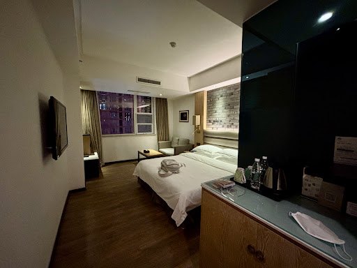 This is a decent budget hotel with clean room & bathroom to sleep after all day out visiting/shopping. Front desk is informative. If your back facing the hotel, on your left walk straight down on the main road for 10-12 mins until you see to landmark of Panda crawling backside on the top of IFS, Chengdu. Cross the road if go IFS; dont cross the road if you want to shop at Chunxi Street. Taiko Li is behind IFS or Silver Building. The streets are bustling with people, shops/merchandise, buildings with wonderful neon lightings that surely worth your social media posts. Opposite Panda landmark is the 24hrs shuttle bus stop that goes to Tianfu Airport, vice versa at RMB15 one way. Alternatively if you have heavy luggages you can take a 1 hr cab ride to Tianfu via highway around RMB210. Plan 3 hours ahead your flight if you plan to shop in duty free.There are convenient store on your left, boutique and fruit store on right. There is a local tour shop at the hotel lobby. Any day trip arrangements to Panda Research Center, Sanxingdui Museum, Leshan, Jiuzhaigao, Er Mei Shan, Pingle Ancient Town/Tiantai Mountain, etc are available, reasonably priced, accommodating and friendly to foreign tourists. Suggestion: Extra portable heater to be available as the heater can blow and reach bed area only ya; the corner room is big and spacious. Bathroom and sofa area were...