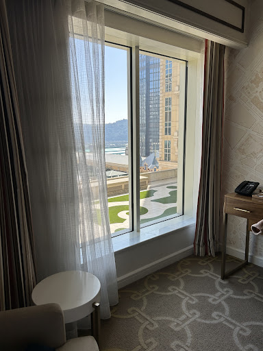Read moreCopy of my previous review as the location insisted on not letting me correct my booking. Therefore, I had two separate booking stays. They did let me combine them into one room once I got to the location though:This is a good hotel room for the price. The room itself was very nice. The service was good, but there were some minor inconveniences. The hotel, casino, and shopping were fine. I don't ding the hotel for this, but the casino is not great (and most casinos in Macau are just low quality).I ordered room service here which was good, but it was awkward ordering it. I am pretty sure one of the few phones in my room didn't actually work. I had to go around until I got the right one, and the "room service" speed dial button I think actually just called the front desk. Regardless, they patched me through. Ordering room service was easy enough, just said what I wanted. However, they couldn't charge the bill to my room and I had to pay once it got to my door. I insisted to just pay in cash but they said they could bring the card machine to the room as well. Sort of on the higher end of the price, but for the convenience and the quality of food, at 1am, it seemed fine. Some of the items were a little confusing...I saw "shrimp cocktail" or something like that and I expected shrimp with sauce in a cocktail glass but got more of a shrimp salad. Still good, but I think maybe there was a small translation error on the menu/what Americans would at least expect. I appreciated the fact that I could just push the dishes out into the hall and push a button for them to be retrieved. This made it convenient for me to just immediately go to bed afterwards.The location is a little far from the actual main area of Macau, but the hotel offers various amount of transportation services. Check in was slow despite having an absolute fleet of check-in staff. This is probably the longest check-in process out of any hotel I have been to. I am not sure why? It was mostly the staff making phone calls and clicking on their computer. Their slow process time made a large check-in line. This could easily be improved I think. Express checkout was convenient, just put your keycard in the drop off boxes throughout the hotel halls. I am pretty sure that my Trip.com booking included tickets to the tower and to their special attractions and such, but the check in lady did not mention this at all. I think that was a mistake on their part and they overlooked it in my booking. I also wanted to actually rebook and upgrade my booking but they have a strict no refund and no cancellation policy, which frankly just made them lose business. They definitely could do...