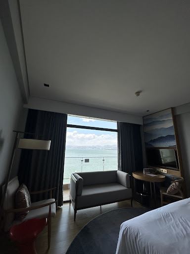 Read more金卡通过招行定的含早豪华海景房(就是基础海景房),按需求安排了最高楼层。|房型有两种,含阳台和不含阳台,我选了阳台房。|金卡待遇为欢迎水果,并且我是早上11点左右CI,第二天可以下午4点CO,这点非常不错。礼宾领到房间。||进房间第一感受就是房型小,但往里走看到正对大床的洱海,一切又豁然开朗,这种美好的感觉至少会持续半天。||房间整体布局是非常紧凑的,但麻雀虽小五脏俱全。|另外,梳子和牙刷质感不错,比其它集团要精致,不知是否英迪格标配。||大床是正对洱海的,初见的话,肯定会哇哇赞叹。|但洱海毕竟还是需要近距离接触的,如果不选宅酒店,那么海景房也不是必要的,环海路上的风景更美。||关于早餐|这里多说一句,早餐是7点开始,我大概7点10分到达。|然而,我进去的时候里面基本上空无一人。|大概再十分钟后,酒店员工多了些,还有一位扫地阿姨开始日常打扫,在我周遭来回走动,时不时扫几下。我想这个应该在客人到达之前打扫好吧。|另外,最初麻烦领位的员工给泡了杯红茶,仅喝了一口就喝不下去了,太淡太淡太淡,白开水一般,保守估计2升水用了有一个茶包。|然后我想找人换一杯,虽然只有屈指可数的几位客人,但好像所有员工都在忙碌走动。直到用餐结束,我才勉强叫到领位那位服务员询问“茶是现泡的还是已经泡好的”,她回答是已经泡好的,我就向她反映,茶太淡了。她楞了半分钟,才反应过来“要不要重新给您来一杯”,我说下次浓点就好。|--------------------------------||谈谈总体感受,因我头一天入住的是大理另一家颇具实力的国际连锁五星酒店,以至于我换到英迪格后产生了严重的不适。那家在服务、员工礼貌方面好太多太多,那服务才像一个五星酒店该有的样子。还好英迪格是新酒店,还是有上升空间的。||英迪格的优点就是地理位置,躺床上就能感受到洱海也不是其它国际连锁5星能比的。|但话说回来,如果你不是选择宅酒店的话,位置什么的也就不那么重要了,毕...
