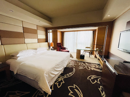 Read moreBottom line: This hotel is alright. Not terrible, but not the best, a decent 7/10.Cleanliness: it clean and decently kept. Nooks and crannies were dusty but the room itself was clean.Location: if you're looking for something close to things, this really isn't a place to stay since it's pretty far from most locations. However, for us it was nice and quiet without a lot of noise or traffic.Service: The service was good, everything we needed or wanted was dealt with and the staff was nice. Shout out to Jesse Zhou for helping us check in and answering our questions, she was great. Only reason that I took off a point is because when we ordered room service the person that brought the food didn't remove the plastic wrap from the food and we had to do that ourselves.Amenities: Honestly, this was a bit lacking. All of the dining options were a bit pricey given the hotel's cost. The room service breakfast was just ok, which was disappointing because of the cost. Bed: pretty comfortable, just felt a bit old.Other notes: The water's default setting was hot, this didn't take points away, it's just something to note. Something I really didn't like was that every light switch was a blue light touch panel that shined in the dark. Also, the thermostat was the same thing but with two extra red and green bright lights. We ended up covering these with pillows and a bag because they...