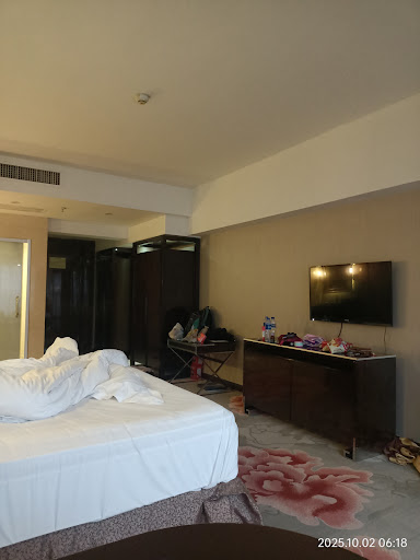 Read moreBarely a two star facility, certainly not a four star establishment. Although it was probably the largest of the rooms we had and the bed was nice and firm, that’s the best I can say about it. It was not clean, the linens were worn. Toilet and bathing in the bathroom, but vanity in the room. The neighborhood was not nice for evening walks. The breakfast was awful – in a dining room with carpet that should be burned because I doubt it could be cleaned!, and dirty/splattered/peeling wall paper. Leftover tape was on the walls where decorations had been. Although they had about 12 dishes on the buffet that should have been hot, they were all cold – no sterno and no warming below, although that was what was intended. The bread/rolls were stale, the only milk was soy, minimal fresh fruit. The next morning the breakfast was to move to a different room. We left before the breakfast time, but we did see them setting up the food. It might have offered hot food, but the room was not arranged for convenient serving – another negative. The desk staff was either good or marginal – depending on when you were there and with whom you talked. I asked for a map and was given one that was completely in Chinese. I found out later that an English map was available, although our guide later told us it was out of date. (How had is it to supply a good map for foreign visitors!) I do not recommend and...