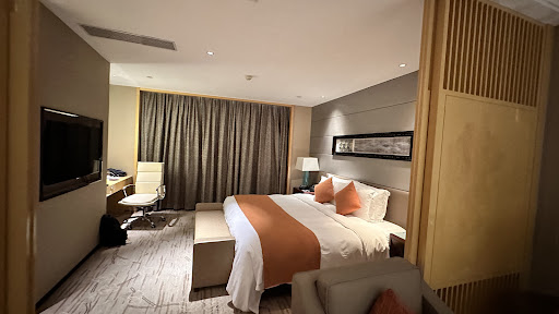 Read moreStayed here on the first leg of a 3 week tour of China.||It was wonderful to arrive into a clen and cmfortable room. The hotel allowed us to check in early so we could have a rest before exploring the surrounding area in the evening.||The rooms were of a good size with the most enormous bed I've ever seen. Loved the bathroom layout.||The buffet breakfast had a good variety of Western and Asian food and was of good quality.||Parts of the hotel are slightly dated, such as the swimming pool however we noticed some construction work going on so possibly they are in the process of doing some renovations. Once these are finished, a stay in this hotel will be very much enhanced.||The only other drawback of this hotel is that it is quite a distance from the centre of Guangzhou. There is a metro station close by providing a cheap train ride into the city.||The staff were eager to help with any questions or concerns and were very patient with the language barrier.||Overall, I wouldn't hesitate to stay here again and would recommend it as a nice...