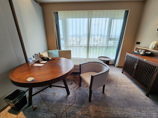 Read moreThe facilities and Hotel stay are excellent as is the morning buffet. The pool is a must see as the view is worth the hotel stay itself. The rooms are massive and very comfortable. We are 3 people and had lots of room. I would have preferred a front hall closet but that's about it.||The thing is being in China, the are some differences you will get. There is Western cuisine but it's different and don't expect great restaurant service. Is really slow and they never clear your table. Your dishes will stack up. Also the internet is blocked for Google, Gmail, YouTube, Netflix as this is not a special business hotel with permission to access these sites. And there is no foreign exchange service in this hotel so you have the bank next door - just beware their bank hours may not be as posted.||Have an alternative email and definitely get a non-Google language translator app on your phone. English is...