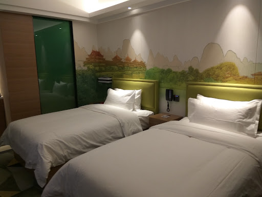 Read moreSWMBO and I were on a two-night coach trip to YangShuo and Guilin organized by a GuangZhou travel company. This was the second hotel we stayed in. ||||A coach trip in China usually revolves around just two entities, eating and shopping. If there’s plenty of both then it’s judged a successful trip. I judged watching the scenery roll by was only of interest to me. We both like seeing sights, but SWMBO particularly likes ‘old’ villages but they’ve got to be authentic. Shopping isn’t of much interest to either of us. The amount of tourist tat on ‘unbeatable prices’ is amazing. ||||Back to the Wednesday, we’d done one ‘new’ village in the morning and a genuinely old and extremely interesting one after lunch. Both offering numerous retail opportunities for the other coach travelers!||||Anyway at 6 o’clock, SWMBO and I arrived at the Hampton by Hilton worn out after a frenetic day of sight-seeing. Booking-in was simple as SWBO has a Chinese ID card which was swiped through a card reader. Only one room occupant’s ID is required. If you’ve both got passports, then it’s copying and entering data manually for both. Key-card entry for the lifts and rooms.||||We were allocated a room on the fifth floor at the front of the hotel. Once the windows were shut and the curtains were drawn the noise of traffic from the road below and the massive construction site across the road was just about audible. ||||The room was a touch on the small side but there were two beds, soft and comfortable for me, but SWMBO prefers something akin to a plank of wood. There’s plenty of clothes hanging space and amazing hangers, and shelves. Plenty of lights and electrical sockets including a 5Volt USB. A rather nice wall mounted TV with a remote which saw little use. There’s Wi-Fi available. There was also a nice office chair and a pull-out desk for the business traveler. No other chairs, though. There was a kettle and in the only draw in the room two mugs and some tea, but no spoon for stirring my instant coffee. In the bathroom, SWMBO bemoaned the lack of a hair dryer but a carful search of the revealed one in a bag on a shelf under the sink. A very nice shower unit in the bathroom with nearly instant hot water. A nice carpet on the floor. All-in-all very good but not surprising for a hotel that opened last year.||||For dinner SWMBO wanted to stroll and find a restaurant but from the coach I’d noticed a dearth of local eateries, so we opted for Hampton’s own restaurant on the first floor. Not a bad choice! ||||There was a special 88 Yuan hot-pot which was proving to be very popular but not for us. SWMBO opted for Udon noodles with vegetables and I took a chance with spaghetti Bolognese. Both nice, the spaghetti Bolognese micro-waved to perfection! I also had a side order of salted ribs and a bottle of local beer. A shade over 100 Yuan for both of us. ||||Then we took one of the three lifts to the fifth floor, padded along the well-carpeted corridor to our room and slept the sleep of the tired and sated traveler.||||In the morning it was down to the restaurant for breakfast at 7 o’clock, only a cup of coffee for me despite a nice selection of dishes, and noodles with various trimmings for SWMBO who was disappointed at the lack of zhou (rice porridge). ||||I’ve no idea of the price the travel company paid as it was part of the package, but the guide assured it was a good deal however we had to visit a Thai ‘latex mattress and pillow’ emporium after breakfast where the ‘owners’ could recoup...