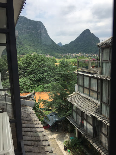 We have rated this one one for its price & rustic experience.||Located on what appears an island with other similar hotels , several restaurants/ eateries & a few small shops.||The owners are extremely friendly & helpful to try and make your stay enjoyable.||The main town is a 10 minute taxi ride about 20 to 25 RMB.||The rooms are located over a couple of buildings ours was on the second floor overlooking the country side.||Rooms are compact consisting queen bed, two side tables, narrow desk with stool & narrow low bench, cloths rack, no place for lge suit cases so we placed ours on the floor in front of the doors to balcony.||Limited toiletries , aircon & tv, only chinese channels, no mini fridge. Bathroom shower, toilet & vanity.||We we able to use their fridge downstairs for our drinks, they also have a ice machine.|Mandarins & bottle water supplied to your room, minimal room service.||Breakfast a 50 walk to their other accommodation, consists of Juice , tea & coffee.|A choice of chinese or western, both have yoghurt, fruit consisting small mango cheeks , sliced orange & a few cherry tomato's, a fried egg cooked both sides that morning & slightly warmed when wanted. The chinese breakfast included noodles, the western breakfast two slices of freshly cooked toast, plus marmalade.||On arrival the owner gives you a couple of restaurants to dine at even though they have there own, we tried the main one, not nice, ribs overcooked & dry, so we decided to try their restaurant even though over the 3 nights no one else ate there, i can understand why, give it a miss. ||They also provide electric scooters for...