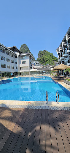 Excellent hotel - location, pool and service! On arrival the lovely lady on reception advised us the room we had booked was probably not best for a family and changed our booking to a more suitable one. The new room was excellent and this moment of great customer service really had a positive impact on us. The hotel is in a brilliant location just on the edge of the very busy downtown/Xi Jie area, but still with plenty of restaurants, shops, ebike hire, etc. right outside the door. and only a very short walk to Xi Jie. It’s also on the river with lovely views of the river and mountains, especially from the pool area. We loved the pool area… gorgeous setting, big enough for fun and proper swimming and a sanctuary from the hustle, bustle and heat of Yangshou. After a days exploring it was a lovely thing to come back to for...