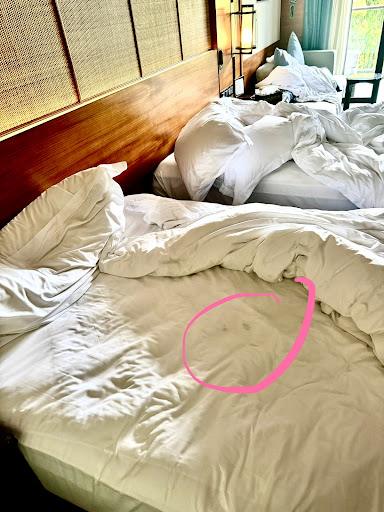 Also, disgusting stains on the bedsheet, and the air conditioning didn’t work all night.