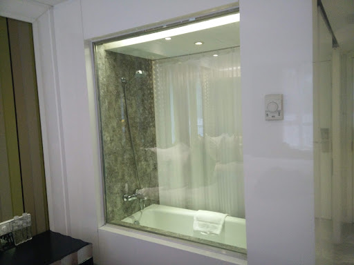 The hotel doubles as a love hotel possibility in terms of design. Condoms are sold openly in the room and a clear glass from the shower is visible to the main room. A hidden cover is available but it has slight transparency. The overhead light in the shower casts a shadow onto the mat even when lowered giving people in the room a shadow show. We ended up having to shower in the dark.