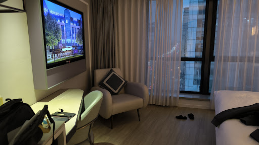 Room: The room is quite okay, not too small but not too big. We can open two 24-inch suitcases in the room.Air Conditioning: The air conditioning is the central type. You can adjust the fan, but the temperature doesn't seem adjustable. At first, we had to wait quite a long time to feel the cold air.Amenities: Every day, they refill two bottles of mineral water for us. They also provide new slippers, a toothbrush, toothpaste, and shampoo daily. Towels can also be changed every day. There are about 4-5 sockets in the room. The sockets are designed for international use, so you can use them without a universal adapter. We found out on the day we checked out that the drinks inside the fridge were free of charge (there was a sticker on the fridge stating this), but it was too late for us to enjoy them. You should check this before consuming any items.Shower and toilet: The toilet and bathing area are separated. The water pressure is strong, but there is only one hook inside the shower room, and it is quite high up (which might not be convenient if you want to bring your clothes inside to change). The toilet is a smart toilet with different functions like auto flush. However, the doors for the toilet and bathing area are semi-transparent (you can see inside, though not clearly). If you are staying with someone you are not familiar with, it might be awkward. Refer to the attached pictures for the toilet and shower area. Between the toilet and shower, they also use the same semi-transparent glass. Please take note if you are concerned about this issue.Breakfast: The room we booked included breakfast. The breakfast options are quite varied, from Asian to Western styles. However, there is a peak period during the morning breakfast hours when you might not find seats. Check with the reception about the breakfast peak period so you can avoid it and enjoy your breakfast.Transport: Although the metro seems quite near, it still takes about 15 minutes to walk to the hotel (we're not sure if we took the wrong exit or if there is a better option).Laundry: They offer a free laundry service. You can use the washing machines and dryers for free. There are three washing machines and three dryers.WiFi: They provide free WiFi, but if you don't have a local (China) phone number, you won't be able to connect to it. However, you can get help from the reception; they can assist you in connecting...