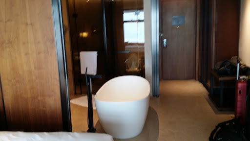 Terrible hotel way overpriced. NOT a five star hotel at all - this is a sleepy 3 star provincial hotel type. No one speaks English - not a check-in, or anywhere in the hotel. The room assigned at check-in was not the room booked, it was the category below. It took over one hour for the hotel to arrange the right room - and this took place past 10pm. |The room was non-smoking and so was the floor supposedly - but the ashtrays by the elevators were all full of cigarettes butts. The shower in the room had a big leak diffusing water horizontally. There was a smoke detector placed right at the exit of the shower cage - the very loud fire alarm was triggered by the steam each time we took a shower. |The faucet of the bathroom sink fell-off on day one. The TV is facing the desk but not the bed - in can only be watched seated at the desk. There are no foreign channels anyway - not one. Everything is in Chinese or in Russian. There is no coffee in the room. |Room service doesn't show up until you call them to come - after 4pm the room was still dirty. |The breakfast experience was the worst: absolutely crowded with strangers in need of a seat inviting themselves at our table. Staff is inattentive and doesn't help - there is only one coffee machine working at the breakfast room. |There is a bar at the hotel lobby but there is nothing to consume - it is basically a wooden desk with an intern manning it. |The elevators are really inconvenient - with a line from the ground floor to get to the high floor lobby, a change of elevators there, and another long wait to get a lift to the rooms from the other side of the lobby. |Wanna be fancy hotel that is just incredibly overpriced and incompetently managed. |Stay away - and go to the Ritz - for...